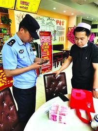 ◆◆◆ 民警見證 10萬元物歸原主 馬玉清隨后聯(lián)系了青島市公安局海岸警察支隊中韓派出所,社區(qū)民警賀慶海立刻趕到了面館。馬玉清向賀慶海進一步詳細描述了撿到的過程,賀慶海通過身份證核實了男青年的身份信息,讓他出示了取款回執(zhí)單和銀行卡,并查驗了手機短信,隨后確認男青年就是失主。吃下定心丸之后,馬玉清當場把錢歸還。經(jīng)過清點,10萬元現(xiàn)金一分不少。