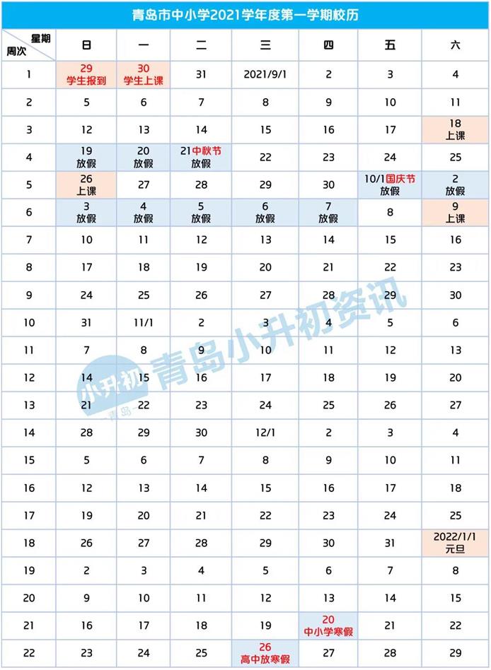 青島市義務(wù)教育階段中小學(xué)生2021-2022學(xué)年度第一學(xué)期周歷,快來(lái)了解新學(xué)期的時(shí)間安排!