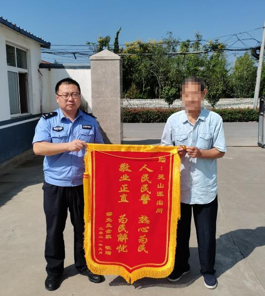 9月15日下午,即墨鄒先生趕到靈山派出所,將一面“人民民警 熱心為民”的錦旗送到了民警手中,對暖心助人的民警表達(dá)感激之情。
