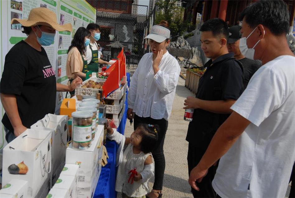 豐收節(jié)上曬豐收,豐收節(jié)里慶豐收。除了好看的歌舞表演外,現(xiàn)場展位上的特色農(nóng)產(chǎn)品同樣奪人眼球。廣場西側(cè)展區(qū)附近圍滿了群眾,有藍村大米、鰲山衛(wèi)蝦米、湍灣黑蒜等,游客們邊看邊買,現(xiàn)場一片熱鬧景象
