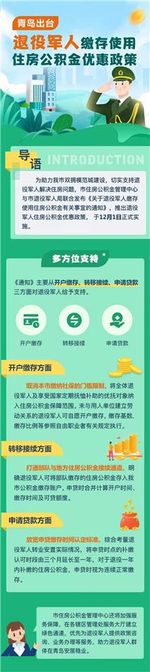 青島出臺退役軍人繳存使用住房公積金優(yōu)惠政策