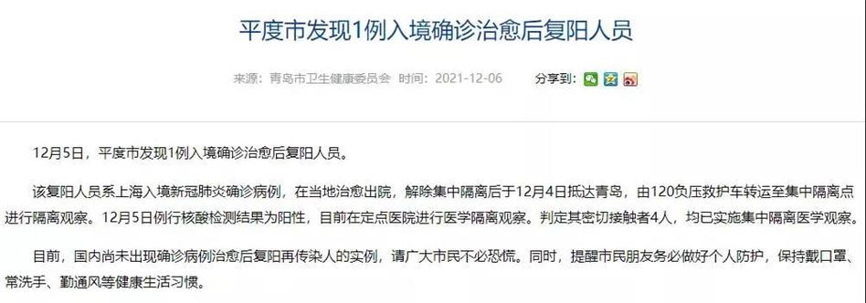 山東1地發(fā)現(xiàn)1例復(fù)陽人員,詳情公布