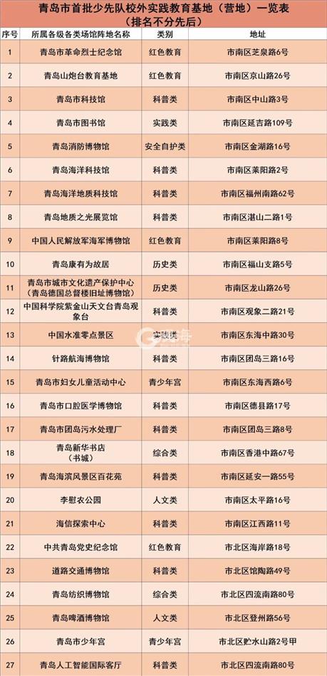青島市少工委命名了我市首批142個少先隊校外實踐教育基地,正式對外發(fā)布“少先隊校外實踐教育基地地圖”。
