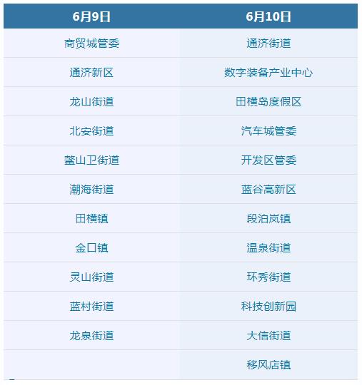 (二)接種新冠疫苗未滿(mǎn)48小時(shí)的人員不參加本輪檢測(cè),請(qǐng)?jiān)?8小時(shí)后就近選擇常態(tài)化核酸檢測(cè)便民采樣點(diǎn)進(jìn)行免費(fèi)檢測(cè)。二、日程安排各鎮(zhèn)街、功能區(qū)兩天分批次完成,具體安排見(jiàn)下表。