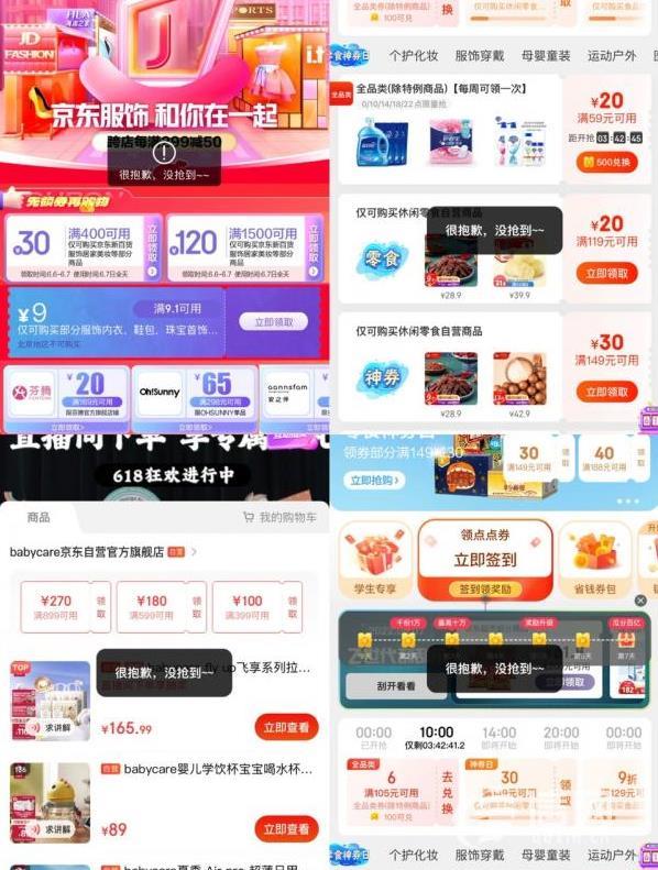 不限量優(yōu)惠券“領取失敗” “自從‘618’第一波活動開始,我就發(fā)現(xiàn)京東平臺所發(fā)出的不限量優(yōu)惠券根本無法領取,包括領券中心里的優(yōu)惠券以及plus會員專屬618優(yōu)惠券!毙煜壬硎,因為在“618”期間,商品的價格較以往相比會便宜許多,便打算在此期間囤一些生活用品以及購買一些衣服。