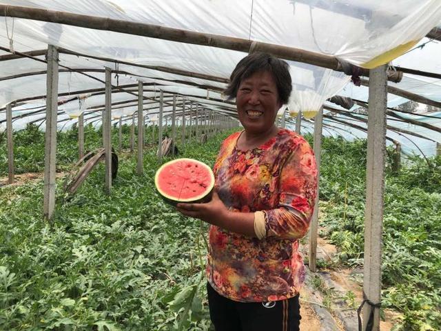 西瓜豐收,種植戶袁珍英高興得合不攏嘴。