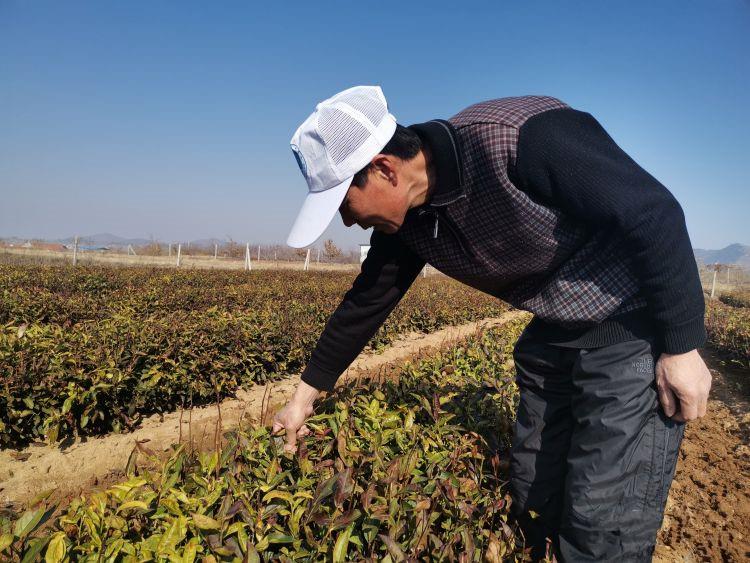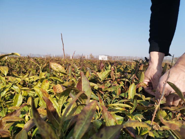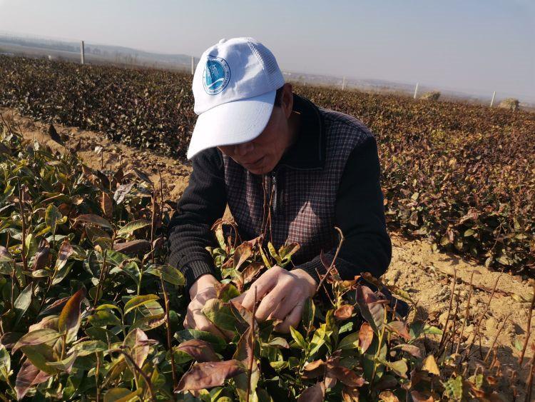 隆潤(rùn)茶園管理人孫友安正在悉心查看越冬茶樹(shù)的葉片