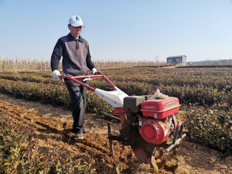 2月19日下午2時(shí),記者來(lái)到黑石莊村的隆潤(rùn)茶園,茶園管理人孫友安正手扶微耕機(jī)忙活在茶園的田間地頭,淺耕過(guò)的土壤松軟濕潤(rùn),適逢微風(fēng)四起,茶葉隨風(fēng)擺動(dòng)。