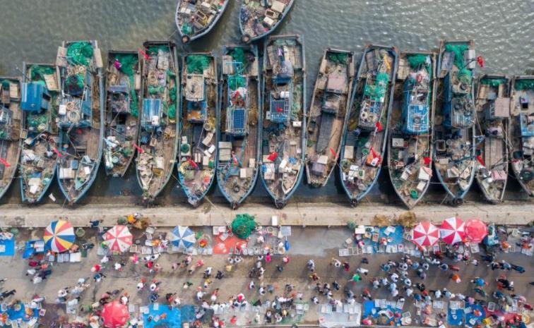 休漁期結(jié)束,即墨區(qū)田橫鎮(zhèn)田橫島村、山東頭的幾百艘漁船拔錨出海,在闊別四個(gè)月的漁場作業(yè),收獲滿滿的魚蝦。