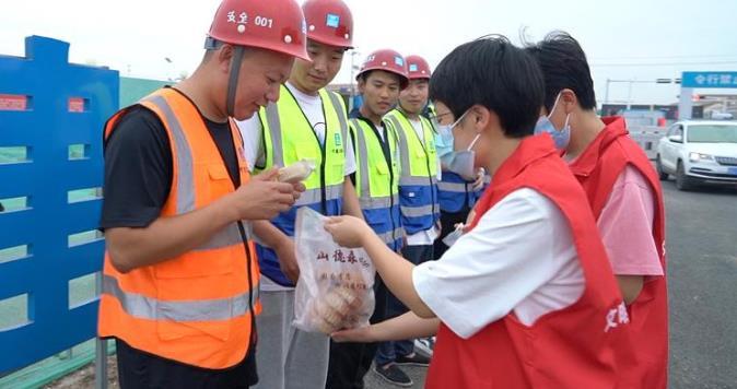 活動(dòng)結(jié)束后,新時(shí)代文明實(shí)踐志愿者帶著新鮮烤制的月餅,來(lái)到周邊的青島百聯(lián)奧特萊斯廣場(chǎng)、三城路改擴(kuò)建工程等建設(shè)工地,為堅(jiān)守崗位而無(wú)法返鄉(xiāng)過(guò)節(jié)的建設(shè)者們送去一份“驚喜”。