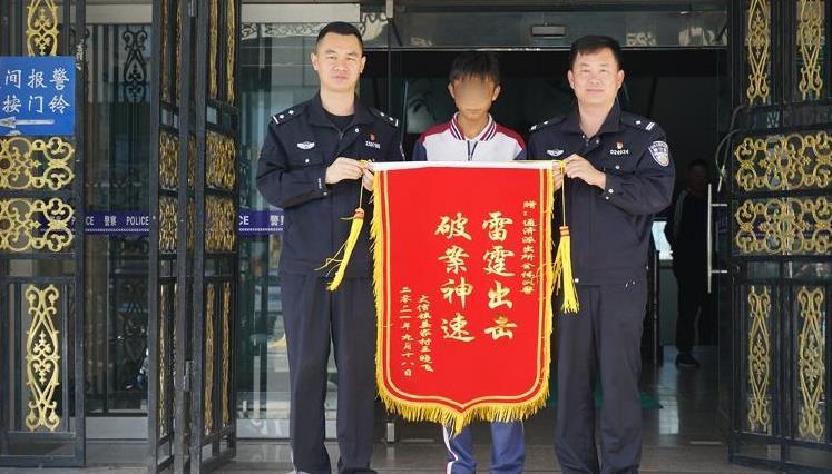 10月12日,青島市即墨區(qū)大信街道王先生將一面帶有“雷霆出擊 破案神速”八個(gè)大字的鮮紅錦旗送到了通濟(jì)派出所辦案民警手中,以此來(lái)表達(dá)自己的感謝之情。