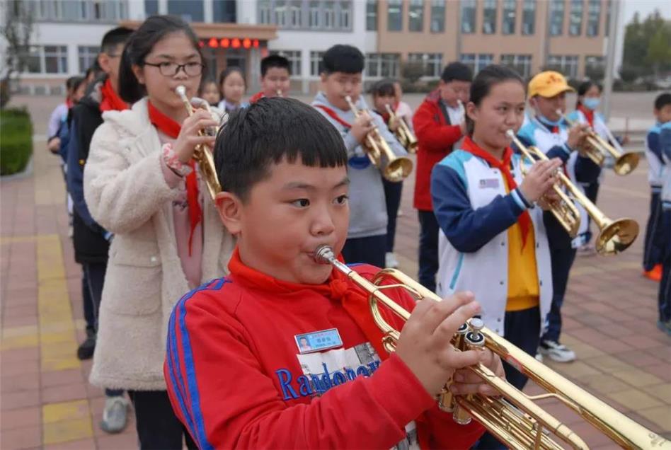 ▲10月26日,山東青島市即墨區(qū)環(huán)秀中心小學的學生樂隊在練習長號。
