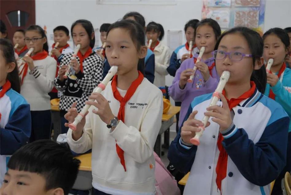 ▲10月26日,山東青島市即墨區(qū)環(huán)秀中心小學的學生在吹奏豎笛。