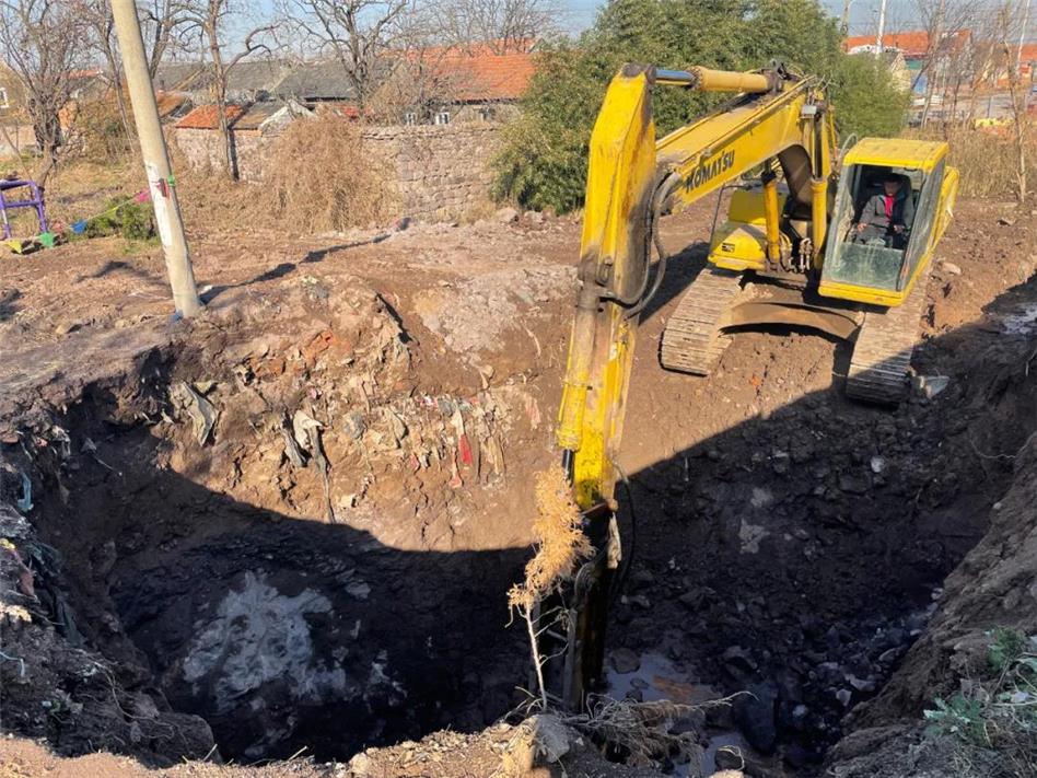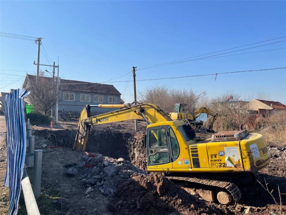 村里的污水管道施工