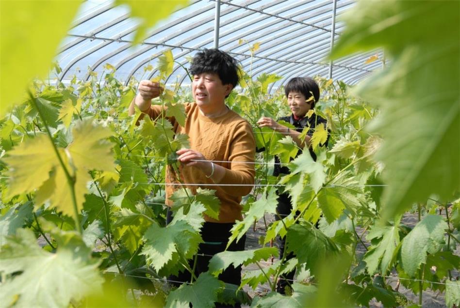 在移風(fēng)店鎮(zhèn)大壩村貿(mào)潤(rùn)蔬菜瓜果專業(yè)合作社內(nèi),在合作社的葡萄大棚內(nèi),工人吳芳、辛秀芹正在修剪整理葡萄枝條。據(jù)介紹,棚內(nèi)種植的藤稔葡萄上市早、果實(shí)飽滿、甜度高,畝產(chǎn)量超6000斤!懊磕晡逶律涎,葡萄一下來,只要在我們的客戶微信群里一發(fā)咱家的葡萄熟了,客商們都紛紛上門收購,每年都能賣上25元一斤!毙列闱巯沧套痰亟榻B。