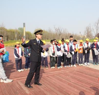在潮海第二小學(xué)北校門前約100米處的墨水河親水平臺(tái),即墨區(qū)生態(tài)文明宣講團(tuán)宣講員和山東大學(xué)“小藍(lán)帽”保河護(hù)海志愿服務(wù)隊(duì)志愿者先后向同學(xué)們介紹了即墨區(qū)河流水系概況和河湖長(zhǎng)制。