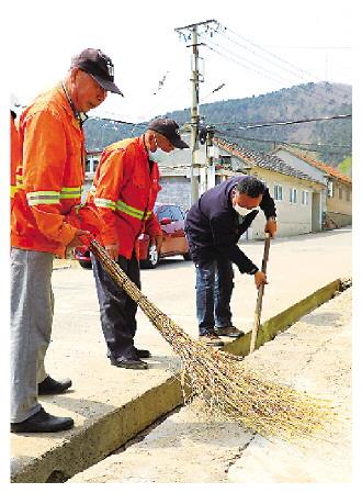 向陽(yáng)莊自然村環(huán)衛(wèi)工人打掃道路兩側(cè)衛(wèi)生。