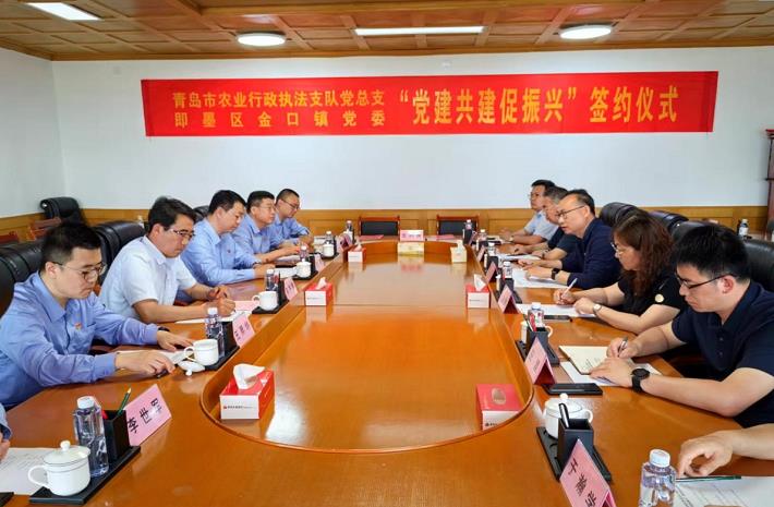 近日,青島市農(nóng)業(yè)行政執(zhí)法支隊(duì)黨總支與即墨區(qū)金口鎮(zhèn)黨委簽約共建。雙方圍繞精準(zhǔn)駐村共建、上下聯(lián)動(dòng)、環(huán)境整治、執(zhí)法護(hù)航等方面進(jìn)行深入交流,分享經(jīng)驗(yàn)做法,并簽訂《黨建共建促振興協(xié)議書(shū)》。下一步,雙方將發(fā)揮各自資源優(yōu)勢(shì),探索推進(jìn)鄉(xiāng)村治理、城鄉(xiāng)融合、農(nóng)村發(fā)展的新思路、新方法、新模式,激活農(nóng)業(yè)新質(zhì)生產(chǎn)力,凝聚各方力量助力鄉(xiāng)村振興。