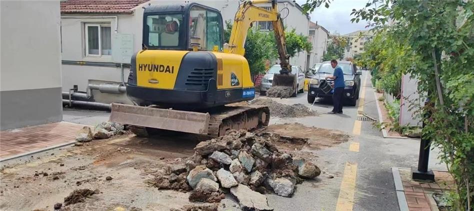 得知情況后,社區(qū)迅速響應(yīng),立即安排工作人員和網(wǎng)格員前往現(xiàn)場(chǎng)進(jìn)行調(diào)查。隨后聯(lián)系物業(yè),動(dòng)用疏通長(zhǎng)桿和高壓水槍進(jìn)行了多次疏通嘗試,但均未果。經(jīng)進(jìn)一步檢查周邊污水井,工作人員懷疑管道可能存在斷裂點(diǎn)。為徹底解決問(wèn)題,社區(qū)隨即通過(guò)街道“社區(qū)吹哨科室報(bào)到”工作機(jī)制對(duì)接園林環(huán)衛(wèi)服務(wù)中心,動(dòng)用挖掘機(jī)等專業(yè)設(shè)備破路,深入查找排污管道斷點(diǎn),最終僅用半天時(shí)間便順利重接污水管道,恢復(fù)路面原貌。
