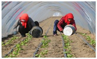 日前,在移風(fēng)店鎮(zhèn)東馬疃村的大棚蔬菜基地里,農(nóng)戶們搶抓農(nóng)時,正在進行人工栽種。室外溫度為-2℃,而大棚內(nèi)的溫度保持在約10℃左右。雖然天氣寒冷,但大棚內(nèi)一派繁忙景象,處處洋溢著春天的氣息。