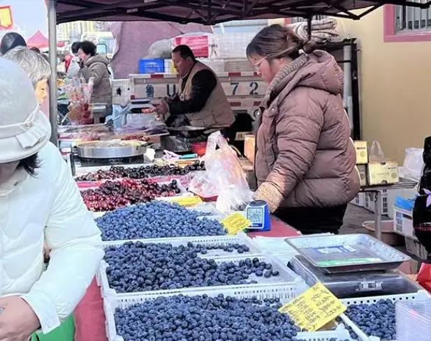 水果攤前色彩繽紛,砂糖橘、車?yán)遄、藍莓堆成小山,本地草莓帶著露珠,吸引顧客駐足嘗鮮。