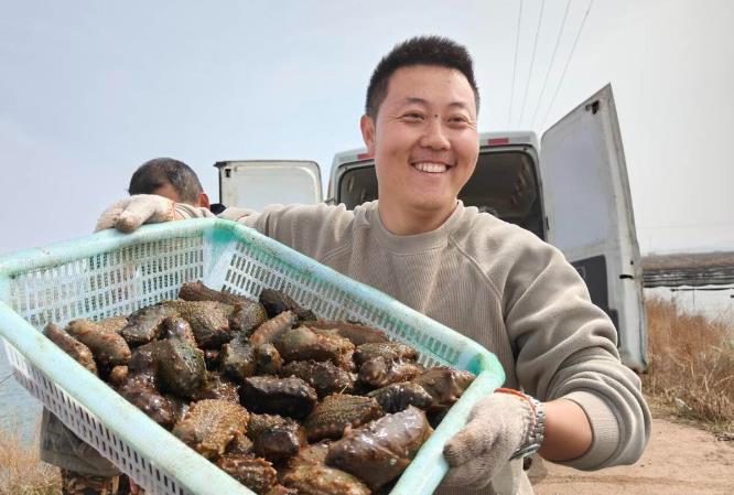 作為全國海參主產(chǎn)區(qū)之一,即墨區(qū)海參養(yǎng)殖主要分布在田橫海域和丁字灣畔。豐富的海藻資源和冷水域慢生長環(huán)境,使這里成為海參生長的天然牧場。近年來,當?shù)赝ㄟ^標準化池塘改造、推廣綠色生態(tài)養(yǎng)殖技術(shù),不斷提升海參品質(zhì)。即墨區(qū)田橫鎮(zhèn)漁業(yè)服務(wù)中心負責人于春林介紹,目前全鎮(zhèn)4萬多畝頭茬春參已陸續(xù)開始收獲,收獲期將持續(xù)到“五一”前后!鞍凑胀甑慕(jīng)驗,收獲最高峰時日上岸量能達到10萬斤。我們也在積極對接收購商,幫助養(yǎng)殖戶拓寬銷路!庇诖毫终f。